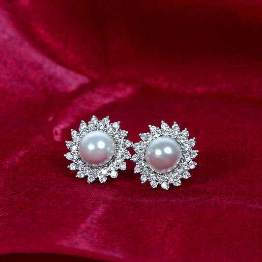 Silver Radiant Sun & Pearl Stud Earrings