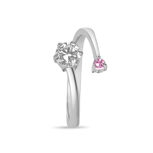 Silver Ruby Pink Stone Solitaire Ring