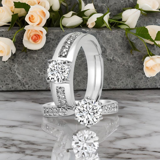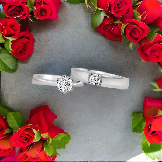 Silver Solitaire Ring for Couple