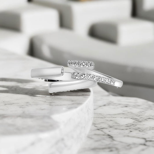 Silver Solitaire Cubic Ring for Couples